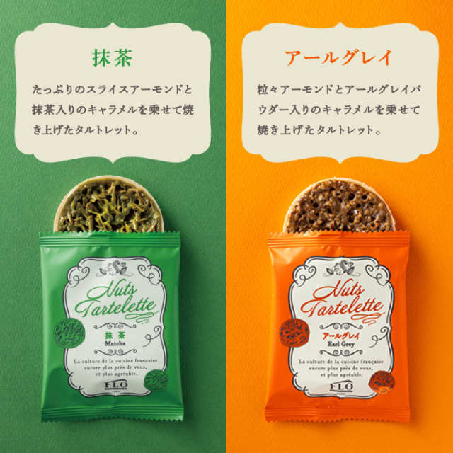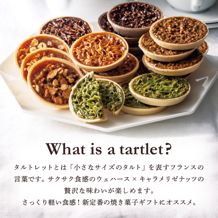 | 内容量 | ナッツのタルトレット プレーン・アーモンドショコラ・アーモンドキャラメル 各2個 抹茶・アールグレイ・珈琲ショコラ 各1個 [9個入り] |